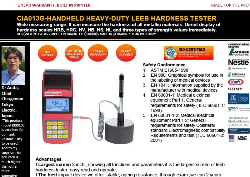 Featured item CIA013G-COMPLETE LARGE SCREEN LEEB HARDNESS TESTER W PRINTER/USB SOFTWARE/MENU DISPLAY