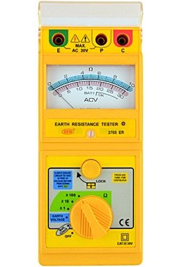● High quality Taut Band movement. ● Capable of measuring earth resistance and earth voltage. ● 2mA measuring current permits the testing of earth resistance without tripping earth leakage current breakers in the circuit under test. ● Test leads are supplied as standard accessories for simplified two-wire measuring system. ● Battery operated. ● Battery check function. ● Calibration performed with supplied test leads.